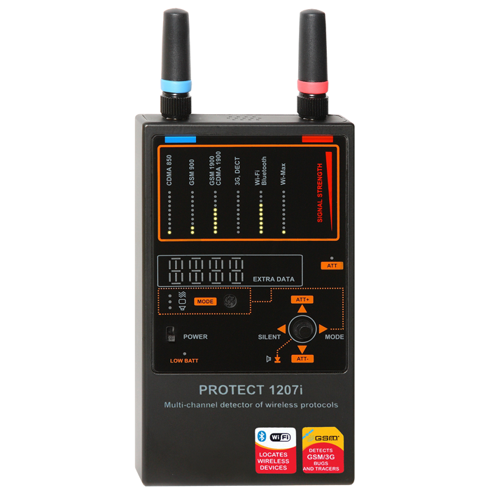 Stronger the signal, closer the device. Detection devices pick up the RF frequencies given off by Cellular, Bluetooth and WiFi spy gadgets that could be hidden in your everyday items. [GSM, 2G, 3G, LTE, Bluetooth, 2.4GHz & 5GHz WiFi and Wi-Max