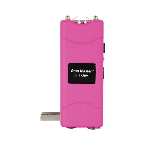 Stun Master Lil Guy 60,000,000 volts Stun Gun W/flashlight and Nylon Holster. This little stun gun is small and compact with 4.4 milliamps depending on the freshness of the batteries. It has a super bright LED flashlight built in charger and comes with a nylon case. It measures only 3 3/4″ x 1 1/2″ x 3/4″. Don’t’ let the name Stun Master Lil Guy fool you. It has a beast inside just waiting to be released. Just press the shock button and the Lil Guy thrashes 60,000,000 volts out of the metal probes. The safety switch is off when in the down position, middle position is the super bright LED flashlight, and in the up position the shock is turned on once the trigger is pressed. Available in 6 colors Black, Pink, Purple, Red, Blue, and Animal Print.
