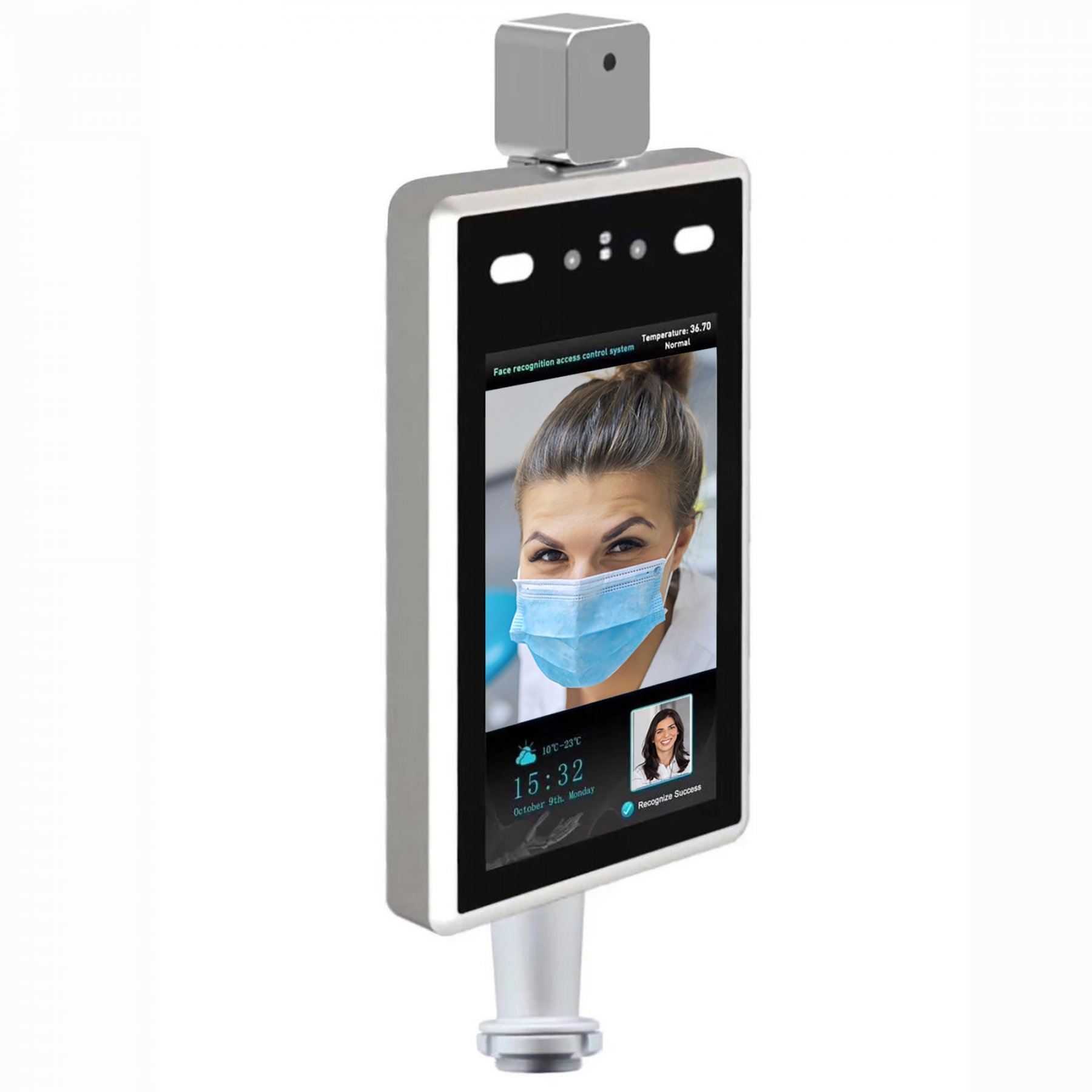 - Check all of your employees’ body temperatures on arrival using facial recognition