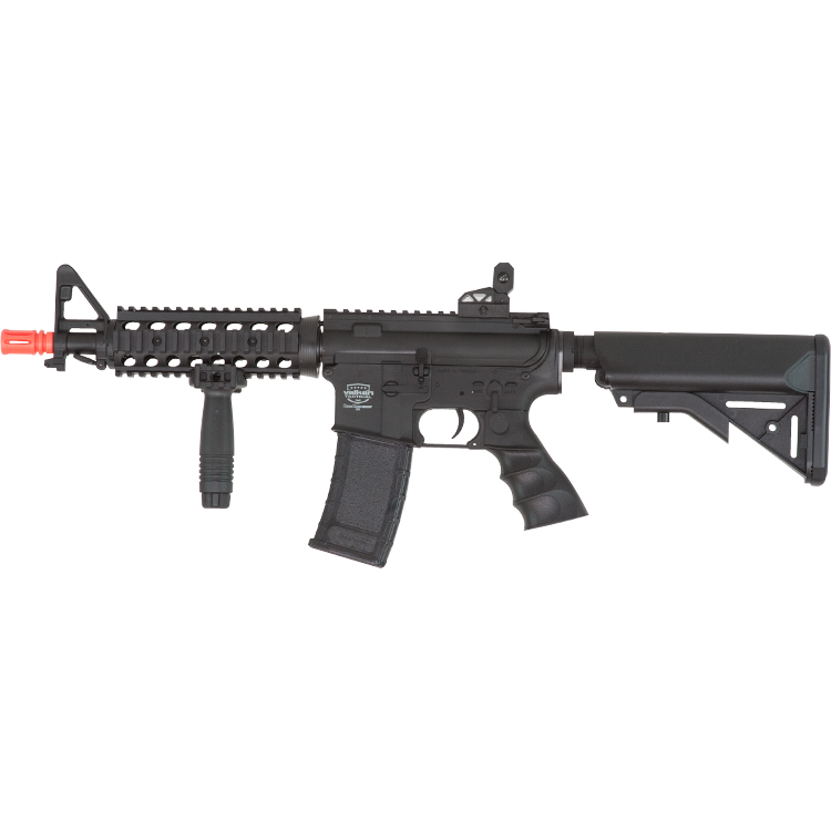 The Valken Tactical Battle Machine Wave 2 – Introducing a CQB line of AEG’s with SBC (Short Barrel Configurations) that have been built for close quarters indoor velocities of 330-340 Feet Per Second with 0.20 gram precision BB’s. The MOD-CQB is our most compact rifle to date with a 10.5″ barrel and 7.0″ rail system for those close quarters engagements. With a wobble free HDP RIS that’s perfect for mounting all your accessories. All Battle Machines come with a retractable 6-Postion Crane stock that accommodates a range of NiMh 8.4-9.6v and LiPo battery configurations, with plenty of room and an easy to remove butt plate without the need for tools.