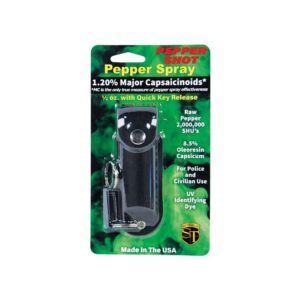 Pepper Shot 1.2% MC 1/2 oz pepper spray leatherette holster and quick release keychain black