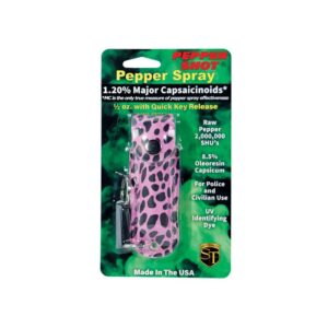 Pepper Shot 1.2% MC 1/2 oz pepper spray fashion leatherette holster and quick release keychain cheetah black/pink