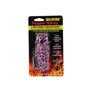 Wildfire 1.4% MC 1/2 oz pepper spray fashion leatherette holster and quick release keychain cheetah black/pink