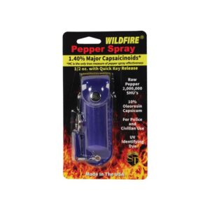 Wildfire 1.4% MC 1/2 oz pepper spray leatherette holster and quick release keychain blue