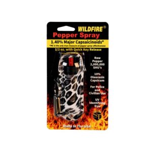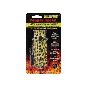 Wildfire 1.4% MC 1/2 oz pepper spray fashion leatherette holster and quick release keychain cheetah black/yellow